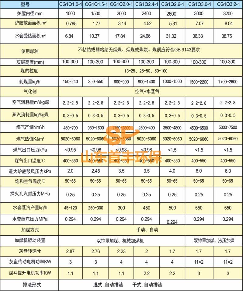 單段式煤氣發(fā)生爐技術(shù)性能參數(shù):